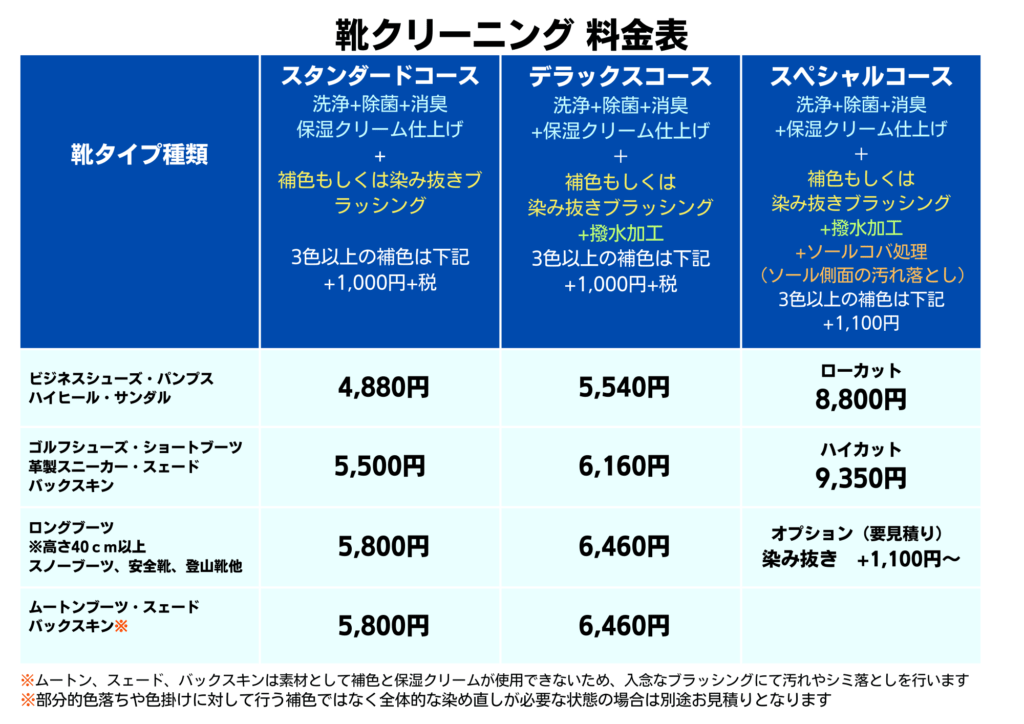 ※靴修理サービスの料金は別料金となっております。